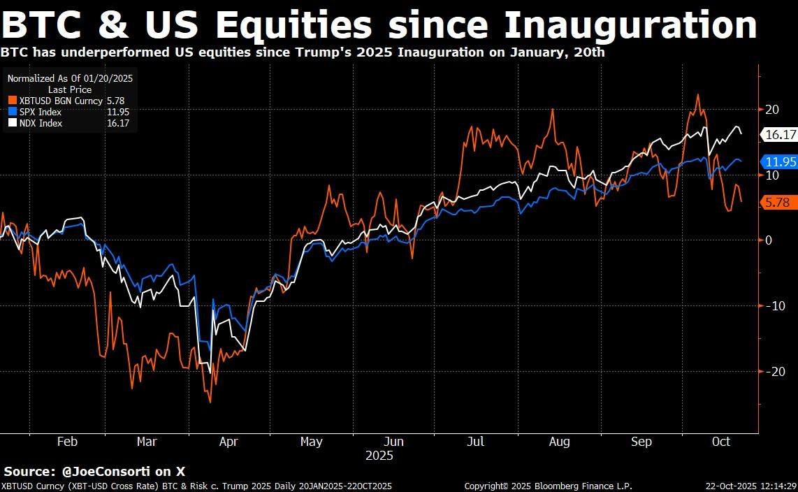 This year, Bitcoin has underperformed in comparison to virtually every major asset class. Heading into the final quarter of 2025, Bitcoin’s performance has notably lagged behind gold, Nasdaq, S&P 500, Hang Seng Index, and the Nikkei 225. Investors who bought Bitcoin around the 2025 inauguration expecting favourable price action from president Trump’s support, are now grappling with a modest gain of just over 5%.