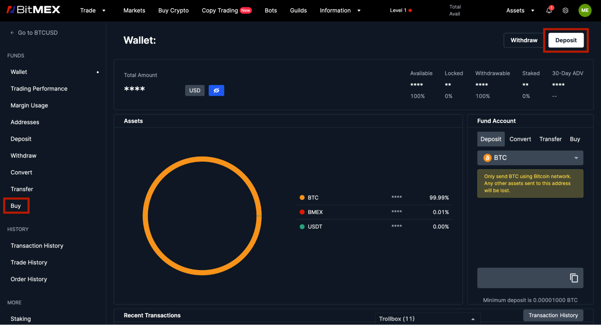 This article is a step-by-step guide on how to make a deposit on BitMEX and navigate your Wallets dashboard to view your assets.